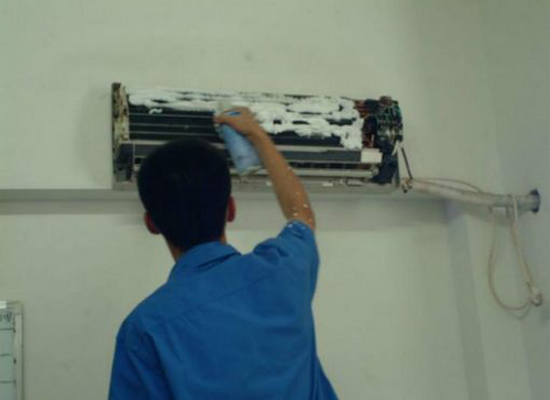 | 六安空调维修师傅给六安用户上门维修清洗空调。 |
